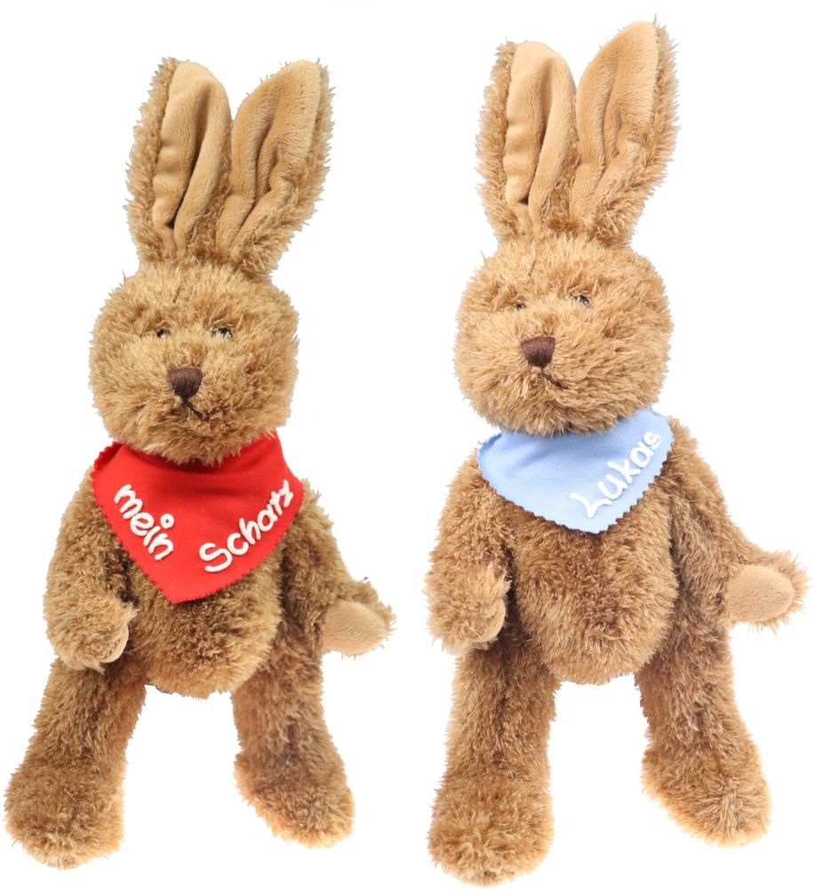 Das Halstuch des großen Hasen wird in unserer Manufaktur mit Ihrem Wunschnamen beschriftet. Gerne erfüllen wir auch Sonderwünsche, schreiben Sie uns einfach eine Nachricht und wir melden uns bei Ihnen!